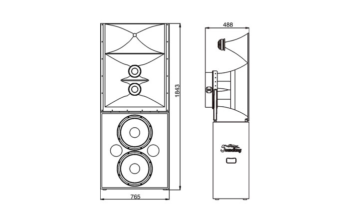 > 1" throat neodymium compression driver equipped with a φ44mm voice coil,, two 6.5" midrange speakers with φ38 mm voice coil and two 15" woofers with φ75 mm voice coil.