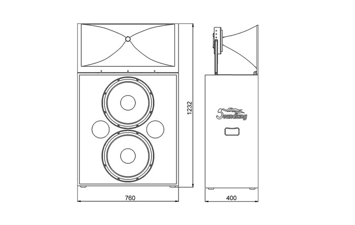 > 1.5" throat neodymium compression driver equipped with a φ75mm voice coil, and two 15" woofers with φ75mm voice coil.