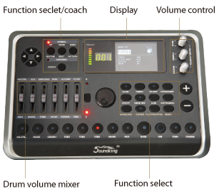 Data transmit: Drum setting & record data can be transmitted into/from U disk via USB MEMORY jack.