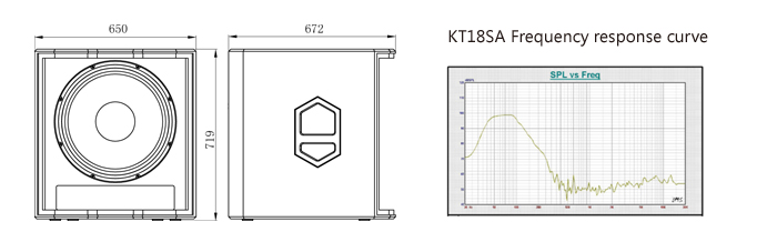 Model KT18SA Type Active Coaxial Subwoofer Frequency response 35Hz~100Hz (±3dB) Input Sensitivity 0dBu Max SPL(@1m) 128dB Amp. power 1500W Coverage(HxV) N/A Crossover (LM/MH) 80Hz /100Hz Input Connector JACK/XLR Supporting system Φ35 Dimension (WxHxD) 650x719x672(mm) Weight 49.5kg