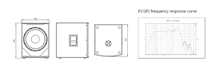Model KV18S Type 18 inch passive subwoofer Frequency response 35Hz –200Hz (-10dB) 45Hz –150Hz (-3dB) Sensitivity(1W@1m) 96 dB Impedance 4Ω Power Continue 400w Peak 1600W LF 18" subwoofer Max SPL 128dB Connector 2xspeakon NL4 Dimension (W x H xD) 530x681x610(mm) Weight net/shipping 30.7kg / 37.5kg