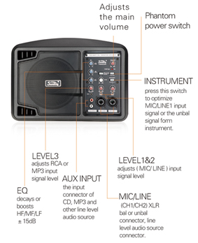 Model PSM05A Type 5inch plastic monitor speaker Frequency response 60Hz –18kHz (-10dB) 90Hz –13kHz (-3dB) Power 150W Max SPL(1m) 115dB Audio inputs 3.5mm mini jacks -10dBu to +4dBu RCA jacks -10dBu to +4dBu XLR/TRS combo jacks -40dBu to +4dBu Phantom power +48V,switchable powersupply 100V-240V,50/60Hz Equalizer high >12KHz ±15dB mid 2.5kHz±15dB low 100Hz±15dB Dimension(W*H*D) 290*210*175 weight 2.8kg