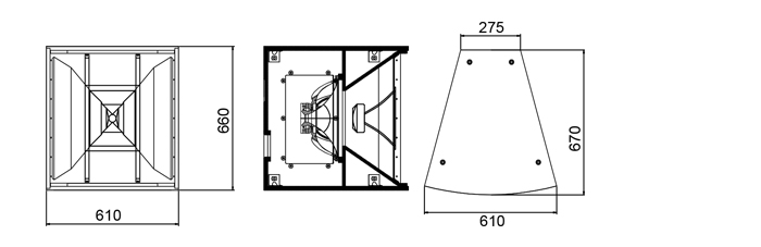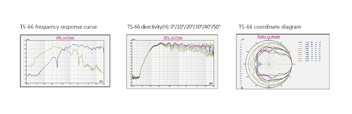 TS-66 consists of a B&C 15”cone woofer and a 3”Nd magnetic HF compression driver. TS-66 features horn cabinet design, coaxial LF & HF, HF horn coverage 60°(H)*60°(V). The loudspeaker has no crossover inside, but has to connect with external digital processor to optimize the performance. The glass fiber constant directivity HF horn delivers delicate tone. High quality 18mm plywood cabinet with slot-tongue structure offers robust tone. The loudspeaker has 16 M10 flying points for quick and reliable suspension.