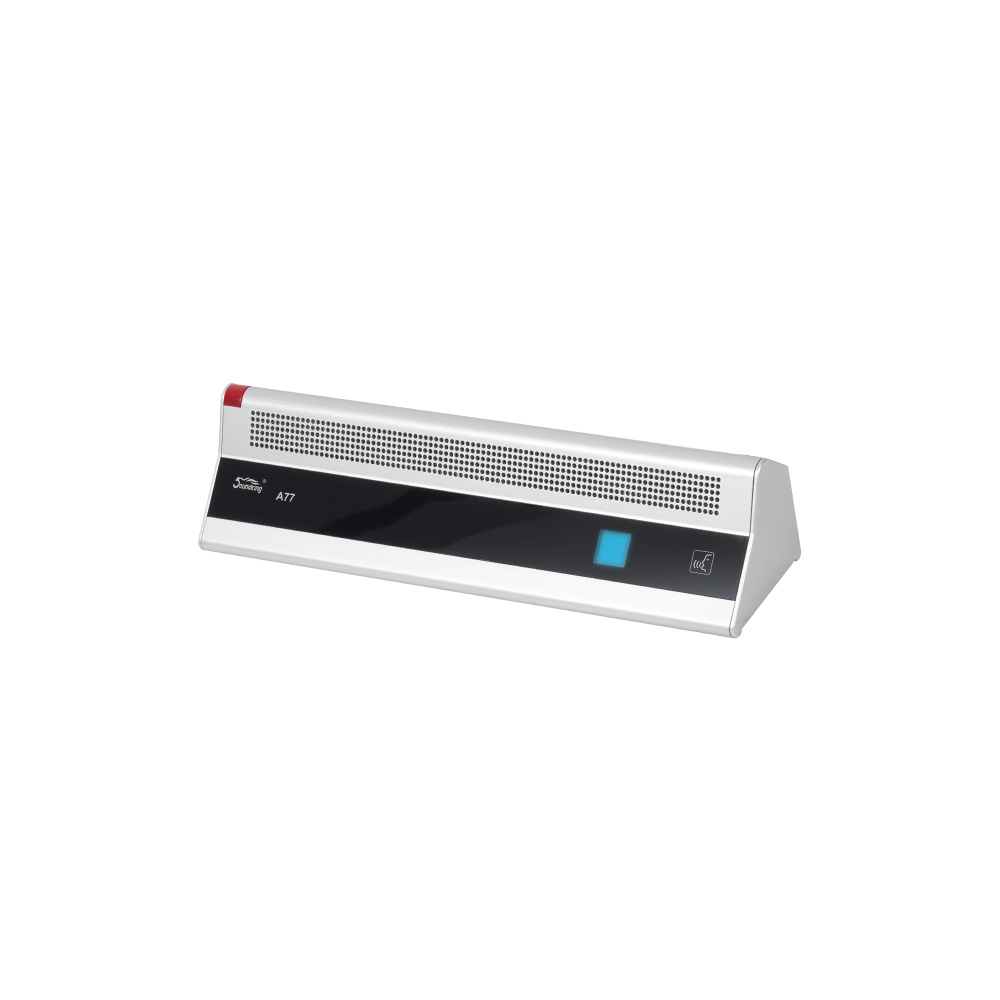 The microphone is flexible in configuration and can be configured as a chairman or executive chairman for any unit. The use of suction cups ensures a sturdy structure, and multiple microphones are arranged in an excellent pickup effect. The speech indicator light (red) in the upper left corner can be used for applications such as speech indication and unit number indication. The back is equipped with a 2.8-inch TFT display screen, which can be freely modified to display the person's name or company logo.