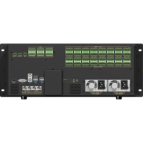| Rear panel | AC power interface: 2; RJ45 2.5G network audio interface: 2; RJ45 network control interface: 2; USB Audio interface: 1;USB debug port: 3; HDMI interface: 1; VGA interface: 1; PS/2 mouse and keyboard interface: 1; RS232 interface: 1; RS485 IN: 1;RS485 OUT: 1; GPIO: 16 groups (32, customizable input/output); Analog input interface: 32 (customizable); Analog output interface: 32 (customizable) |