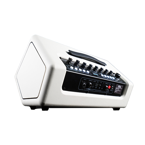 K100 features dual 4" chassis and dual 1" tweeters, creating a wide and balanced stereo sound field effect, with a frequency response range of 45Hz–20kHz, rich and powerful bass, transparent and delicate treble, and a signal-to-noise ratio of >70dB, accurately reproducing every sound detail. Equipped with a large-capacity lithium battery, it boasts a battery life of over 2.5 hours, meeting the needs of short outdoor use. Supporting 13 preset instrument modes, multiple effect mode adjustments for instruments and microphones, automatic drum machine and AVB segment switching for drum machines, as well as Bluetooth & OTG live streaming connections for quick pairing and high-definition audio transmission. Equipped with an OLED display for real-time monitoring of device status and easy switching between performance styles. Rich interfaces allow for easy connection to various devices such as instruments and microphones. With a built-in handle design, two installation angles, and f ive fashionable color options. This loudspeaker is suitable for playing and singing simultaneously, providing a complete solution for home entertainment, online live streaming, travel, and more.