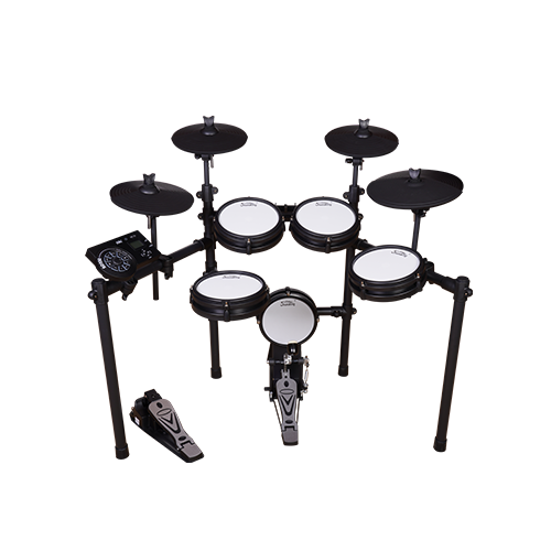 A midrange electronic drum set, ideal for drummer practice and regular performances, boasts realistipercussion sounds and a standard configuration of 5 drums and 4 cymbals. The sound source module