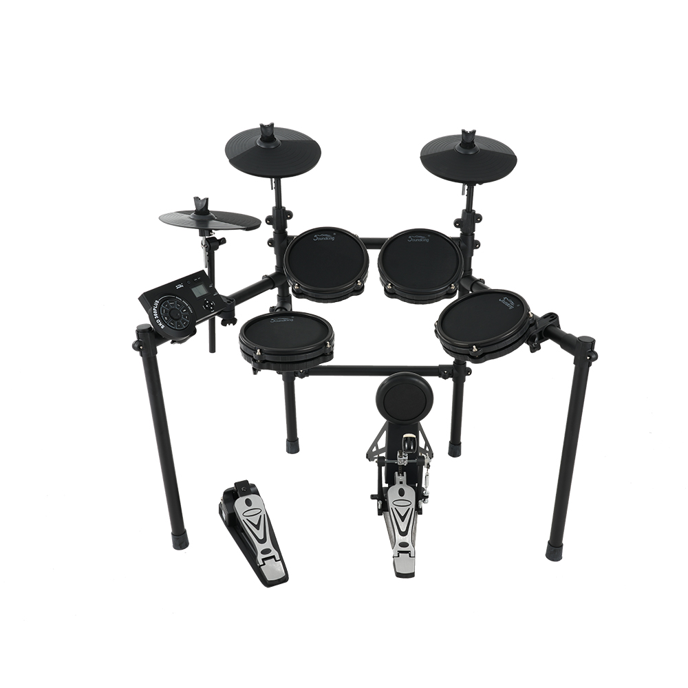 SKD360PLUS mesh electronic drum, a meticulously crafted tool for drummers' practice and performances. It seamlessly combines realistic sound, comprehensive drum set configuration, practical electronic drum features, and convenient Bluetooth audio capabilities, delivering an exceptional experience for drummers whether in daily practice or on stage. It's the ideal choice for those pursuing their music dreams. Standard configuration includes: 5 drum pads, 3 cymbals, and a cymbal control box featuring KICK, SNARE, TOM1, TOM2, TOM3, RIDE, CRASH, HI-HAT, and HIHAT CONTROL. It supports the expansion of CRASH2 and TOM4, catering to the diverse needs of professional performances.