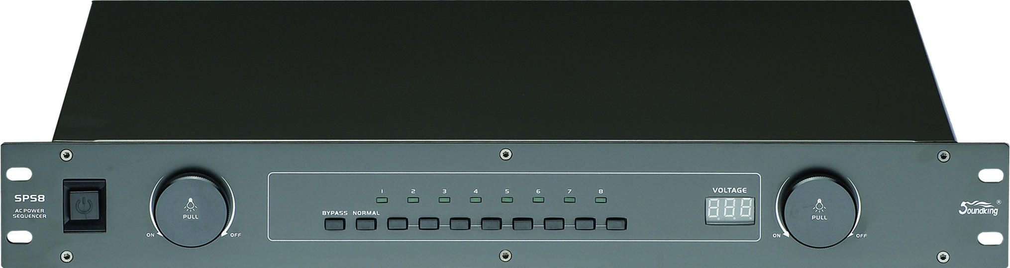 he SPS8 employs intelligent MCU to control the output voltage, mainly use to connect or disconnect each channel by sequence, with voitage display to indicate the input voltage, prevent the electronic devices form the electronic shock or damage.